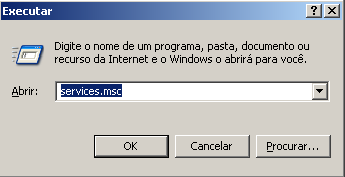 Antes de tudo, vamos ao comando Executar e digitar services.msc: