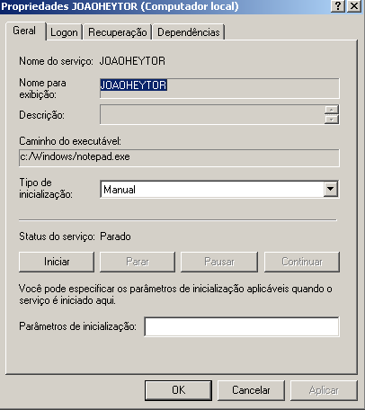 Notem que no meu caso, o nome do meu serviço era JOAOHEYTOR, portanto utilizei o seguinte comando: