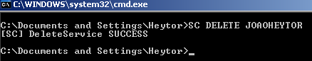 Em seguida, dentro do Prompt de Comando iremos trabalhar com o comando SC DELETE, como abaixo mostrado: